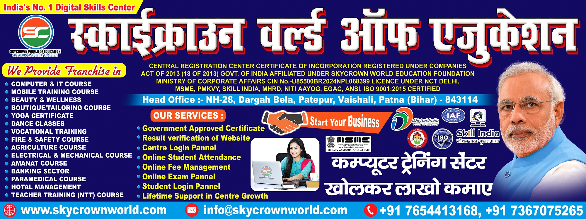 Skycrown World of Education is a renowned vocational training institute which has been providing high-quality skill-based education since its establishment in 2024. Our aim is to prepare students and professionals for today's competitive job market.